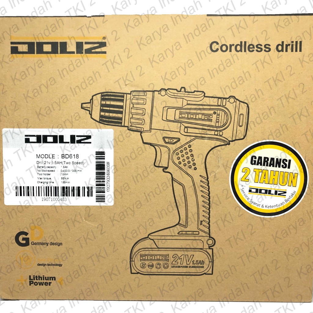 Cordless Drill 21 V Doliz Bd 618 Mesin Bor Baterai 21 Volt Besi Kayu Bd618