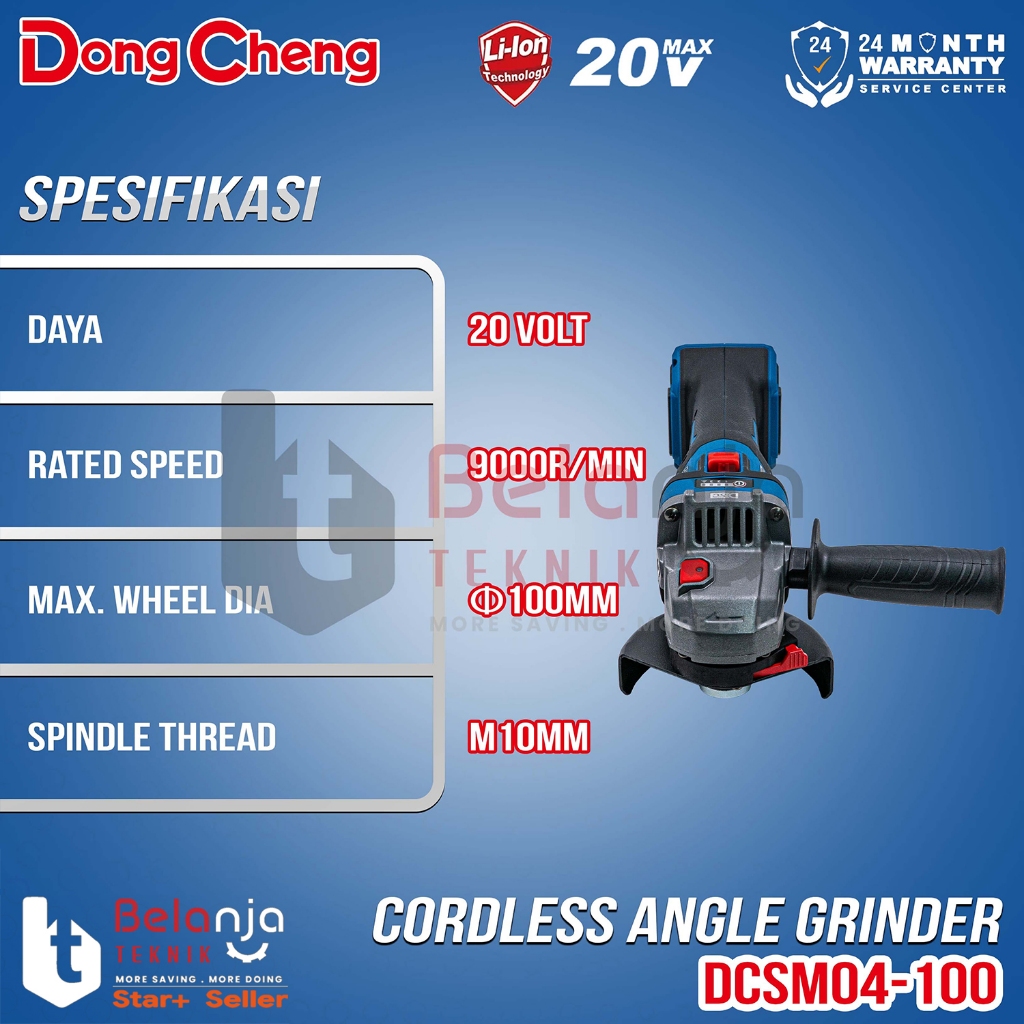 Mesin Gerinda Baterai Dongcheng Dcsm04-100 Z 20V Angle Grinder Cordless Unit Only Dcsm 04 100 Dcsm04