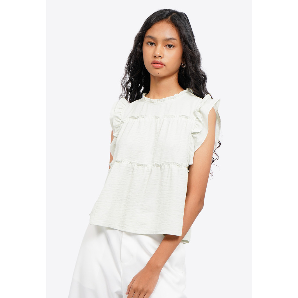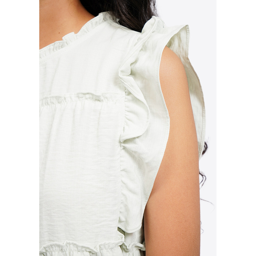 Colorbox Ruffled Sleeveless Blouse Green