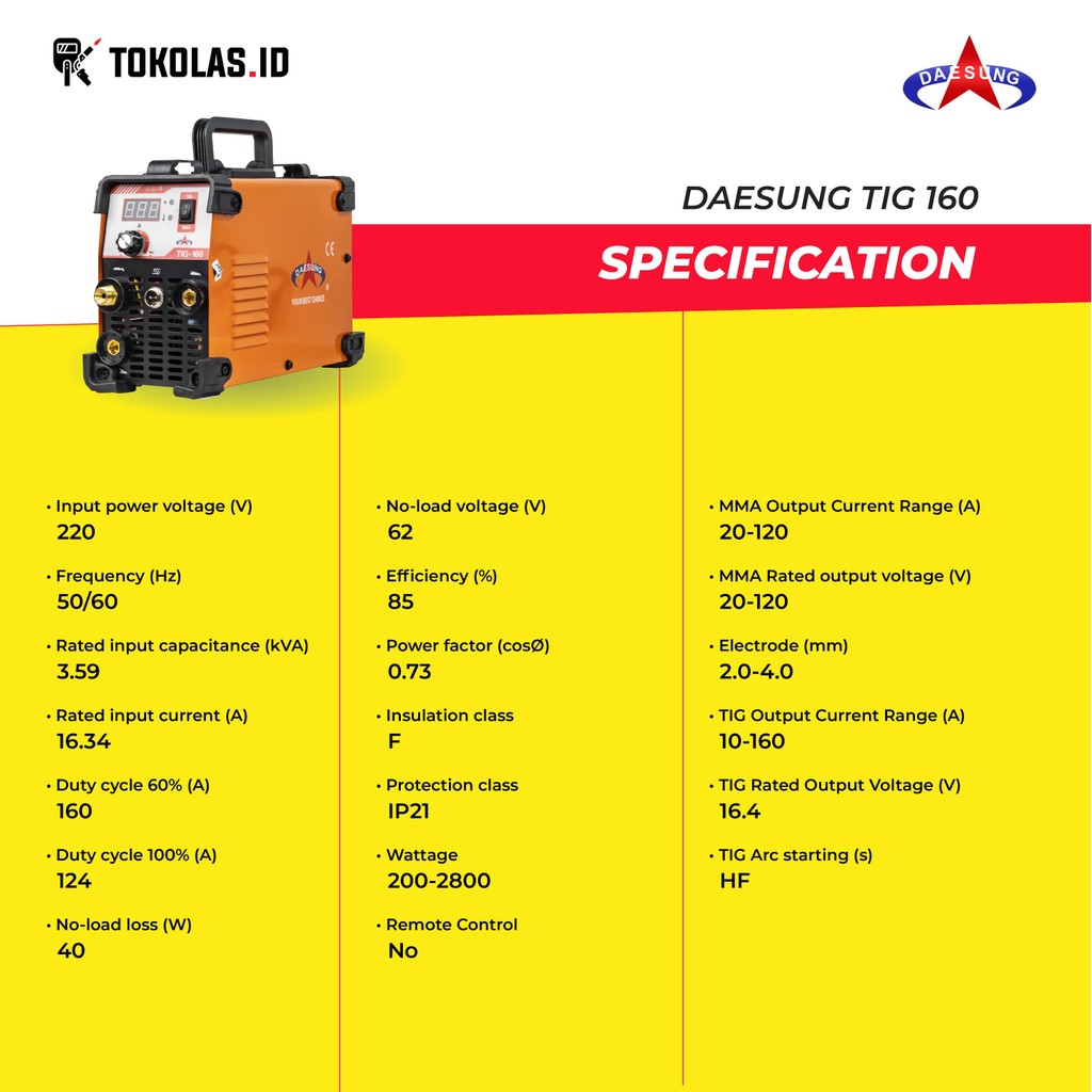 Mesin Las Argon Daesung Tig 160 A Inverter Welding Digital Display Mma Stick Korea Stainless