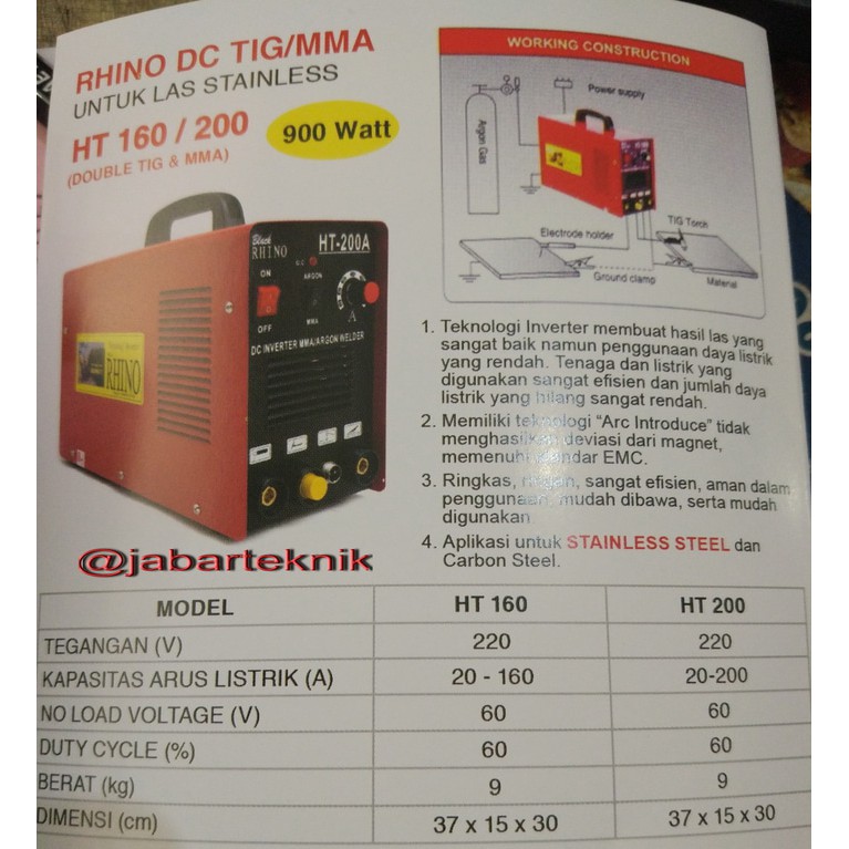 Mesin Las Argon Tig Travolas Inverter Black Rhino Ht-200