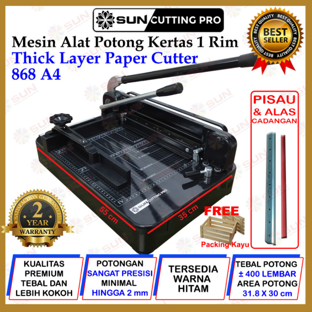 Mesin Pemotong Kertas 1 Rim A4 868 Thick Layer Paper Cutter 868 A4 Kualitas Super Premium Garansi 2 Tahun ( Alat Potong