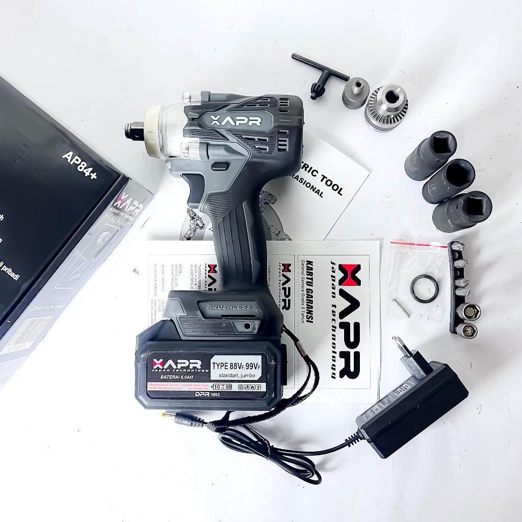 Impact Wrench Apr Ap84+ 550Nm 88Vf Mesin Pembuka Baut Ban Mobil Motor Cvt Baterai Cordless Fullset