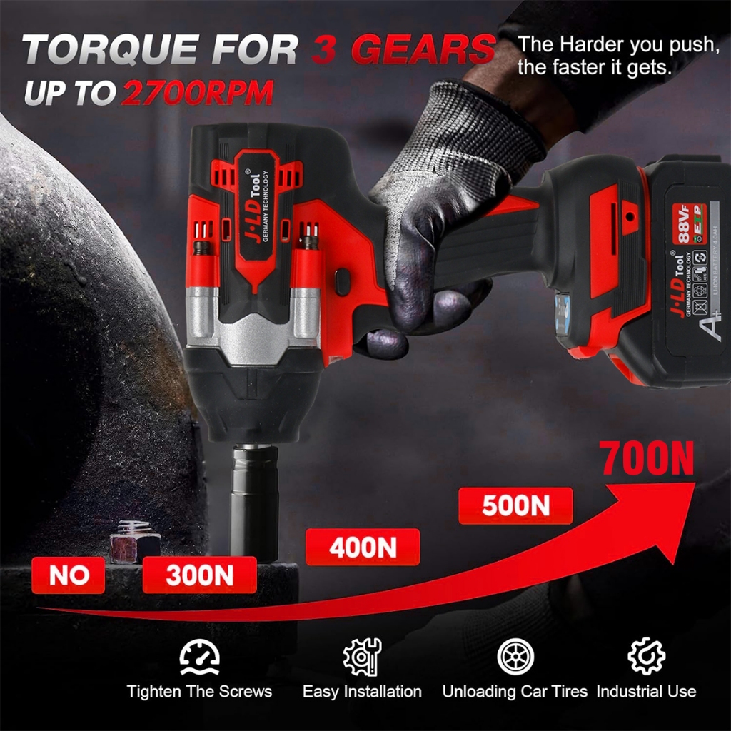 Jld Impact Jumbo 700N.M Torsi Gila Brushless Impact Wrench Baterai Tahan Lama 3-Speed + Anto Stop Buka Baut Motor/Mobil/