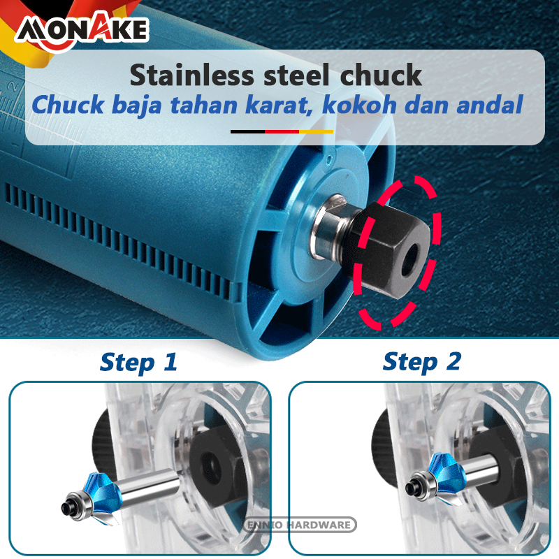 Monake Alat Jerman Wood Trimmer Kayu Set 6Mm 1/4 Inchi Mesin Router Profil List Kayu Trimer Ruter Mk3709