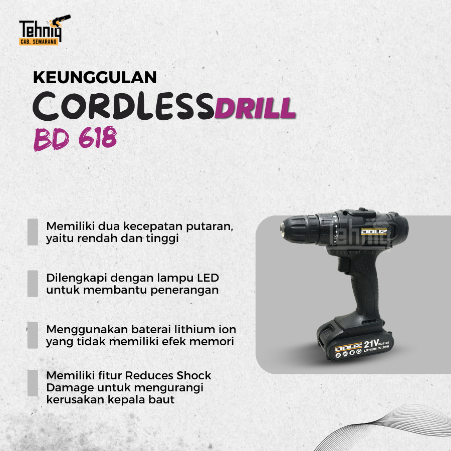 Mesin Bor Baterai / Bor Tangan Tanpa Kabel Doliz Bd618 Cordless Drill