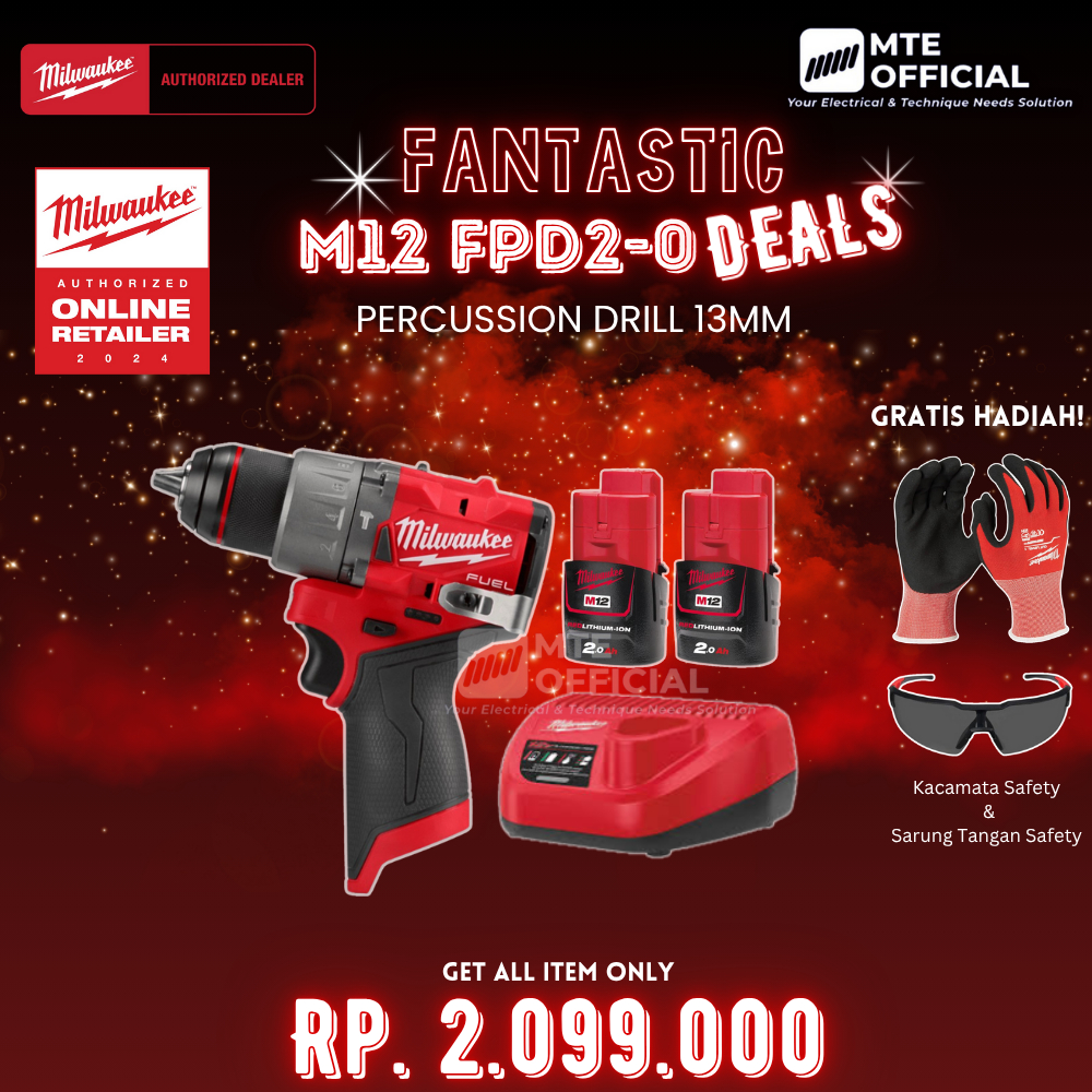 Milwaukee M12 Fpd2-0 Fantastic Deals Percussion Drill Set 13Mm Brushless Mesin Bor Paket Unit Only 12 V Battery