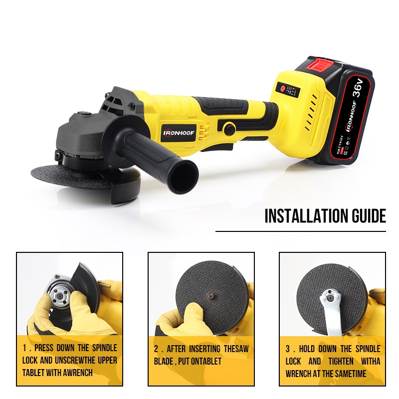 Ironhoof 36V Angle Grinder Brushless Baterai Cordless Mesin Gerinda Tangan