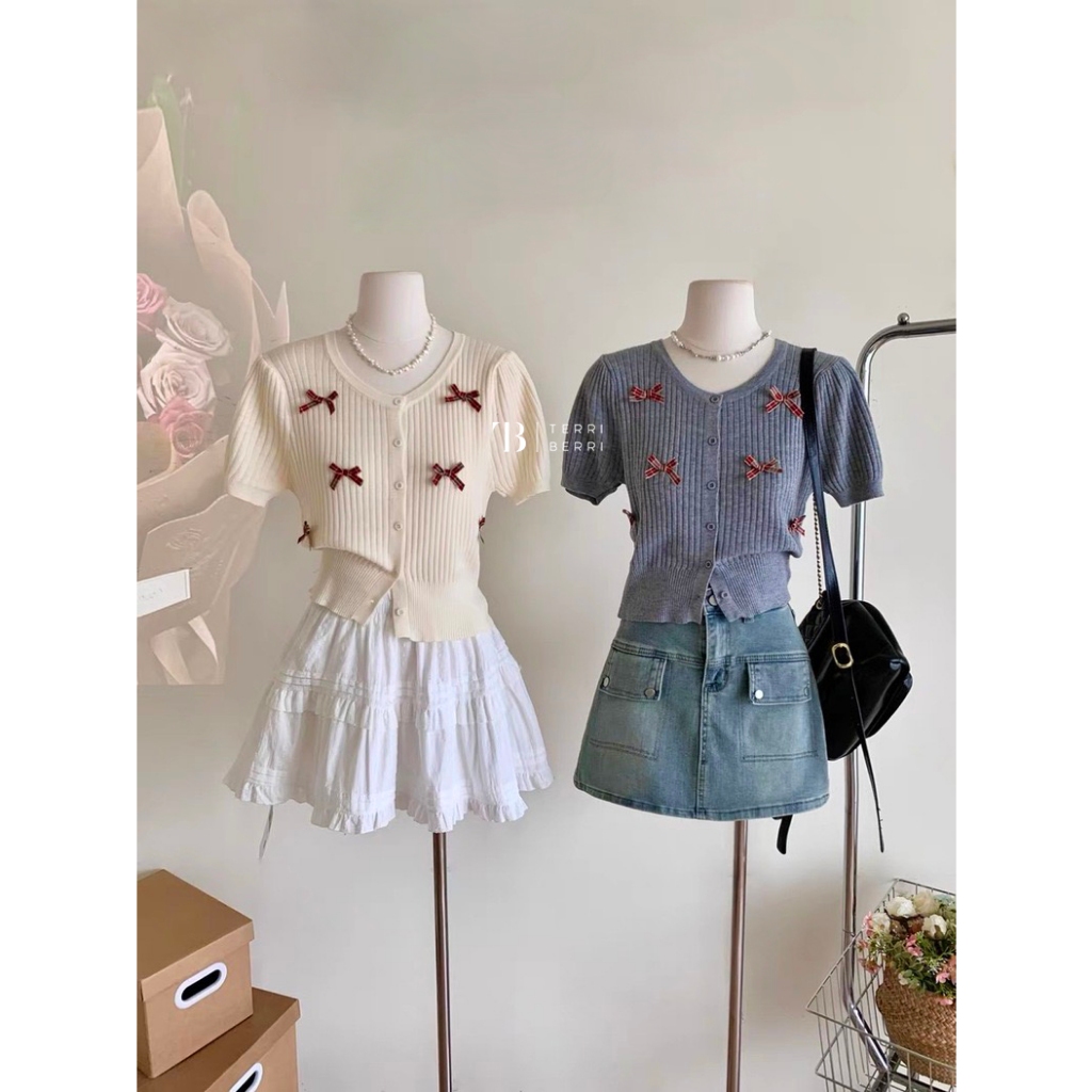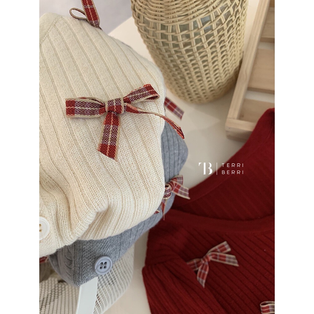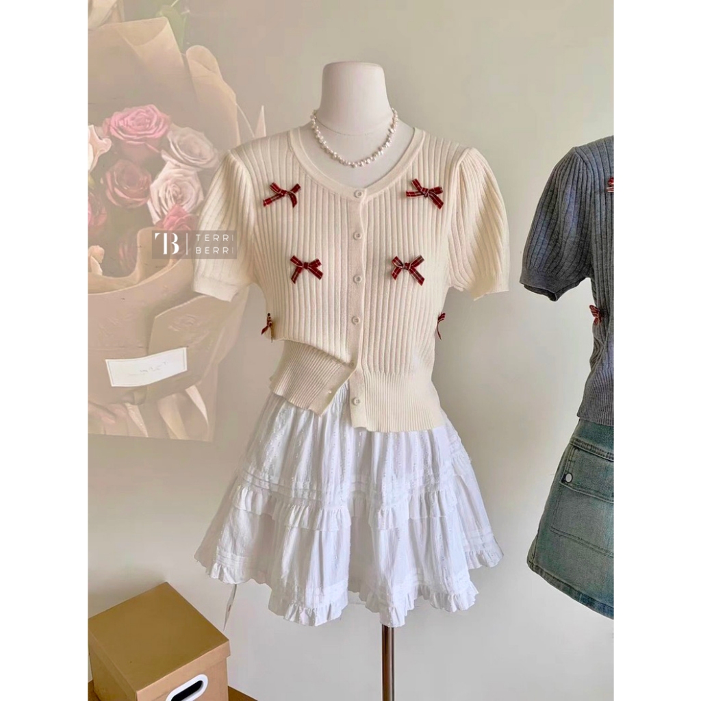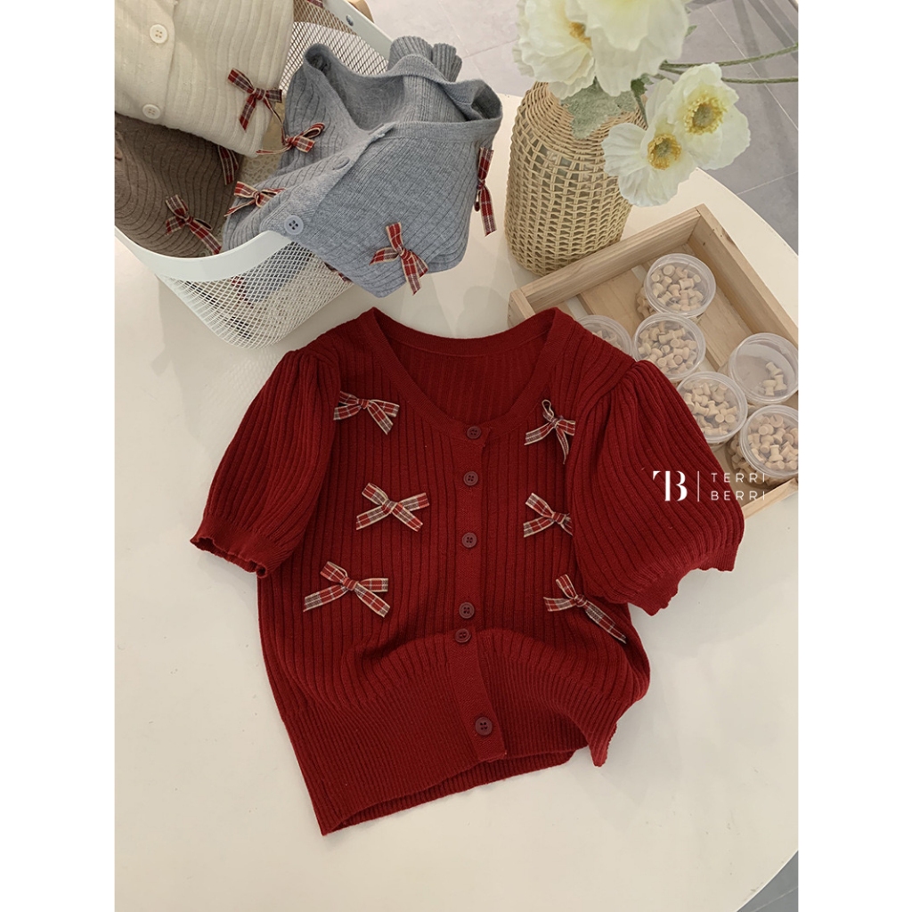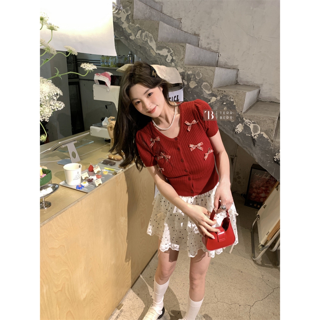 Noella Knit Blouse Korea Pita | Coquette Bow Top | Atasan Crop Top Rajut Premium Baju Natal Xmas Christmas Merah Maroon