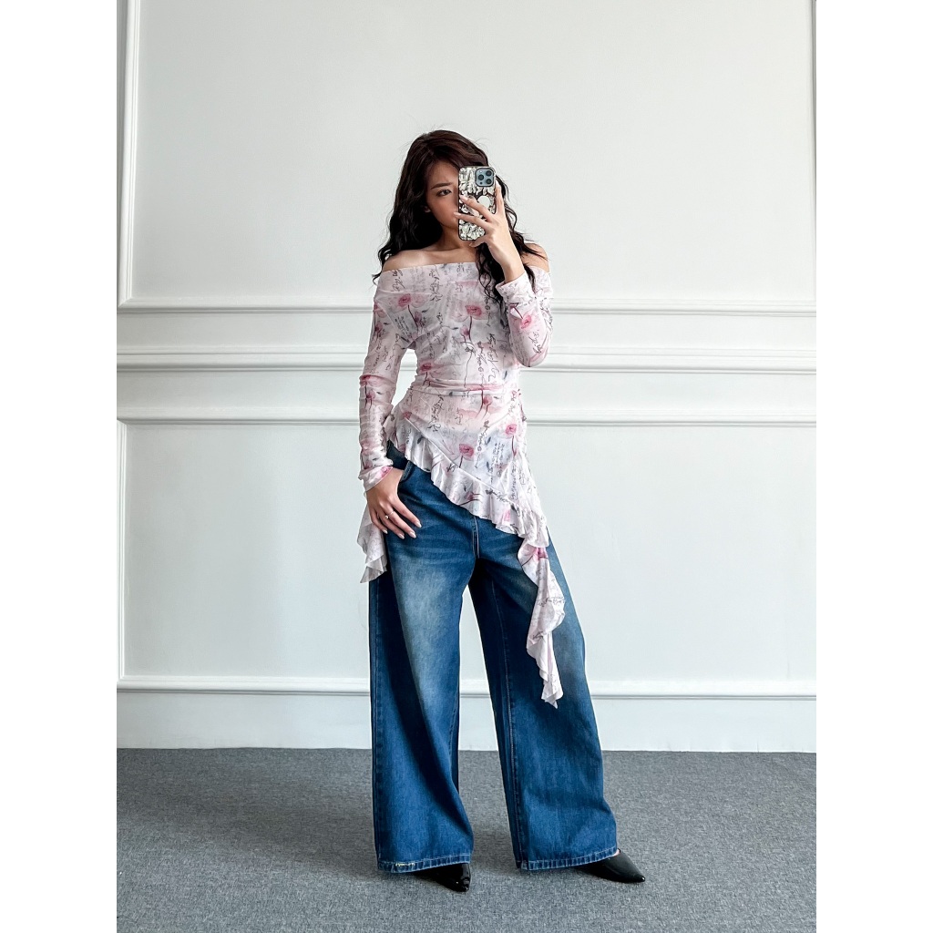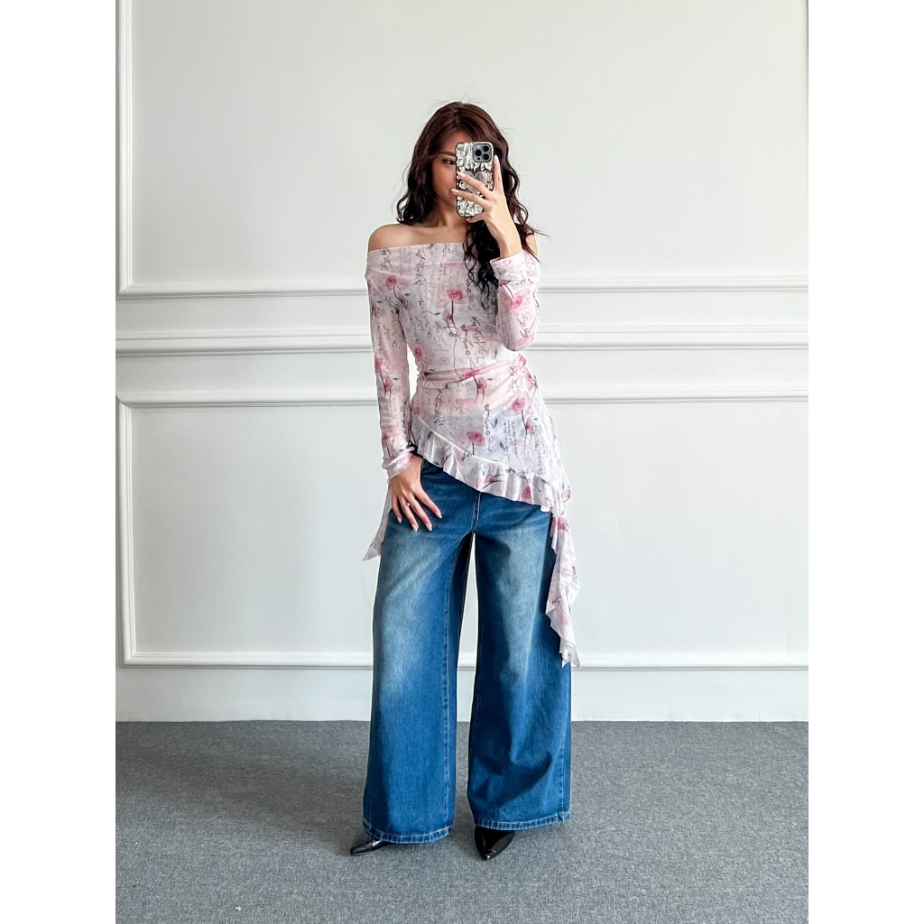 Dolla - Janesy Top Y2K Transparan Atasan Ruffle/Rumbai Sabrina