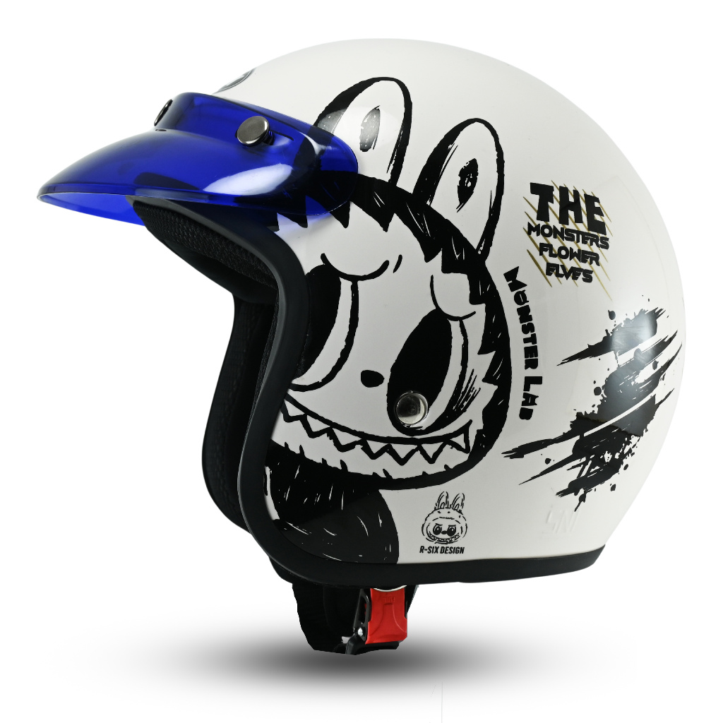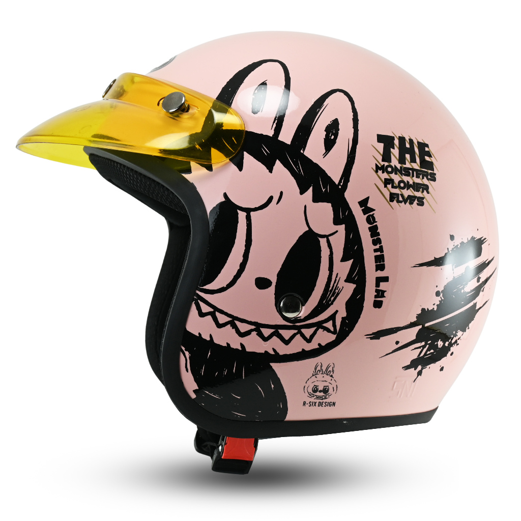 R-Six Design Helm Monster Lab Retro Bo Pria Wanita SNI Teru