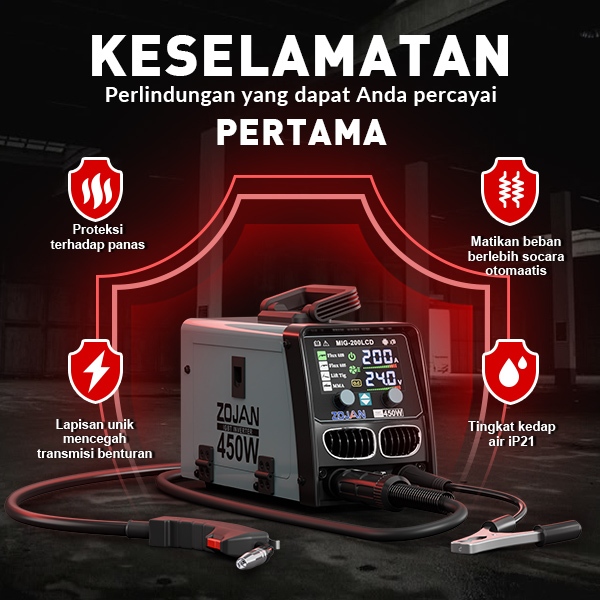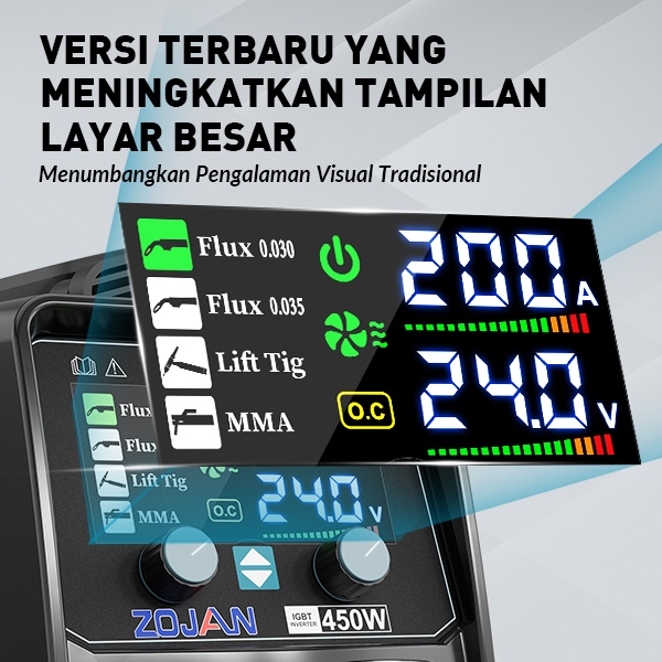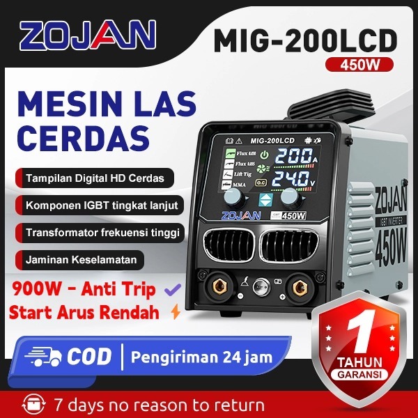 Zojan Mesin Las Cerdas 3In1 Inverter Igbt Mesin Las 450Watt Listrik Power Welding Tools Mig-200Lcd