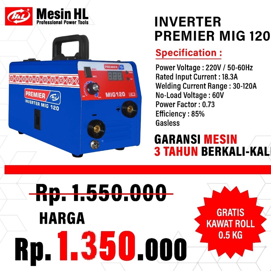 H&L Mesin Las Mig 120 A / Welding Inverter H&L Premier Mig120