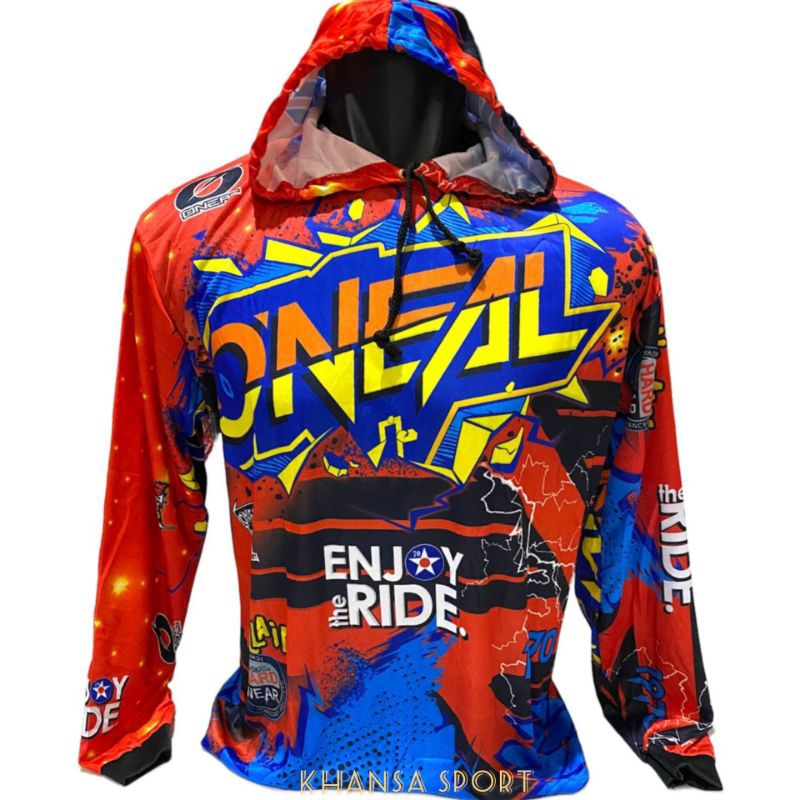 JERSEY MOTOCROSS BAJU TRAIL KAOS BALAP FULL PRINTING LENGAN PANJANG HODDIE/KUPLUK PENUTUP KEPALA DEWASA BAHAN LEMBUT DAN