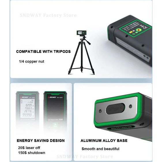Sndway Meteran Digital Green Laser Hijau Outdoor Distance Meter 50/70/80/100/150 Meter Sw-50G/70G/100G/100Gtd/150Gs/80Gq
