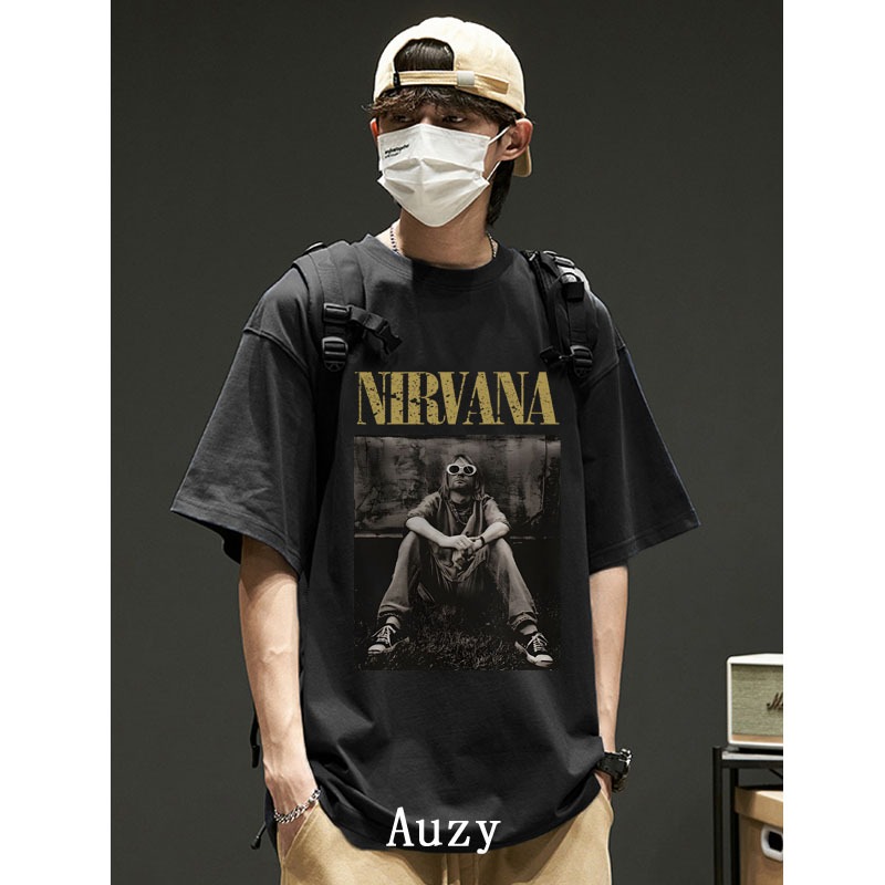 AUZY NIRVANA Retro Amerika Band kaos pria wanita atasan Lengan Pendek T-shirt skena baju oversize t shirt distro original 100 8.21