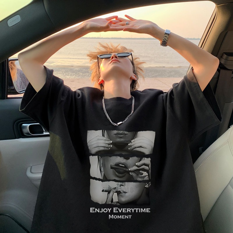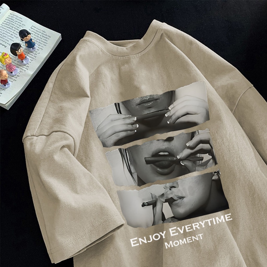 TINY Tshirt Oversize Baju Kaos Pria Distro Original 100 Tebal Gaya Amerika Retro Gulung rokok pencetakan Kaos Pria Keren Kece Katun 100 Cotton