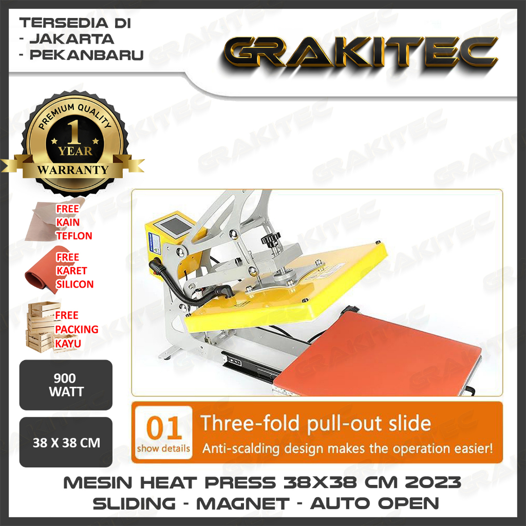 Mesin Press Sablon Kaos 38X38 900 Watt Aosl Otomatis Auto Open Sliding Heat Press High Pressure (Alas Aluminium + Karet