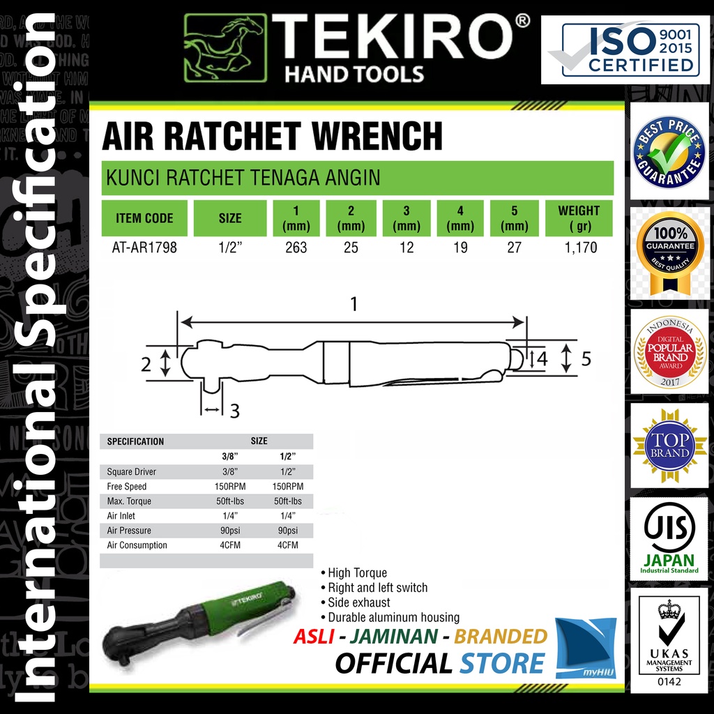 Kunci Sock Angin Racet 1/2" Inch Dr. / Air Ratchet Wrench Spanner - Non Impact Tekiro