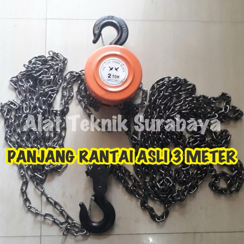Chain Block 2 T Ton X 3 M Meter / Takel Hoist Blok Katrol Kerekan Tackle