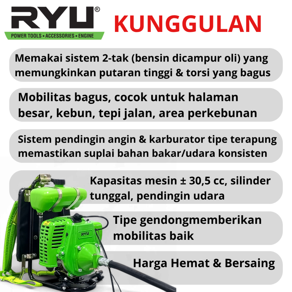 Ryu Mesin Potong Rumput Gendok 2 Tak Brush Cutter Bensin Campur Rbc 2T Pemangkas Rumput Awet Praktis