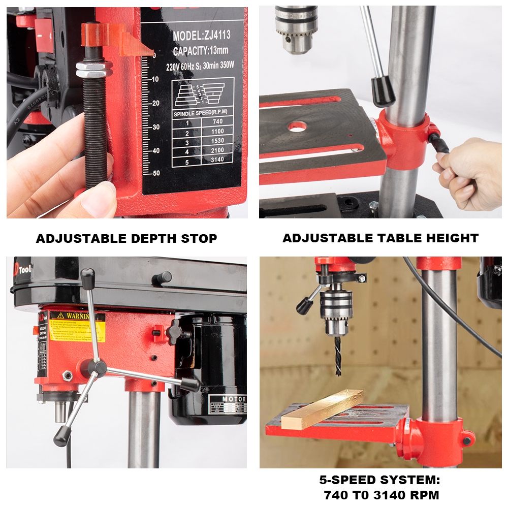 Jld 13Mm Mesin Bor Duduk Listrik 5-Speed Mode Bench Drill Heavy Duty 350W Bor Listrik / Zj-4113 Bor Besi Kayu