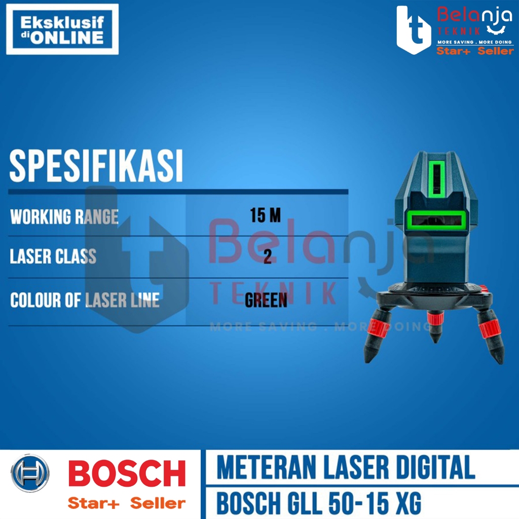 Meteran Laser Garis Bosch Gll 50-15 Xg + Tripod 5/8 Inch Kit Line Level Green Laser Gll50-15 Gll50-15Xg