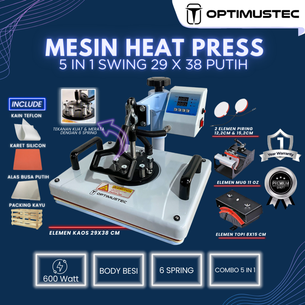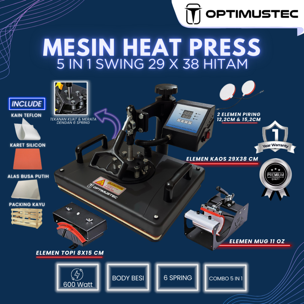 Optimustec Mesin Press Sablon Kaos Swing 29X38 3In1 5In1 9In1 All Varian