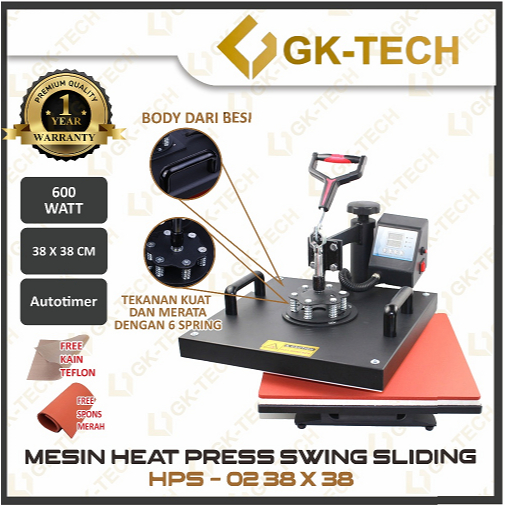 Mesin Heat Press Kaos Swing 500 Watt 23X30/29X38/38X38 Cm Sablon Digital Small Swing Heat Press