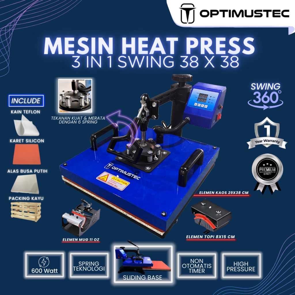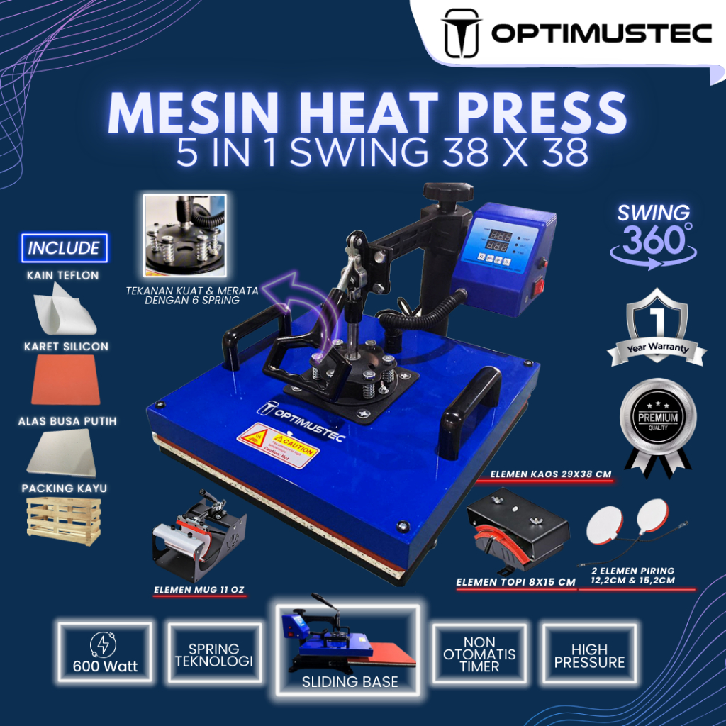 Optimustec Mesin Press Sablon Kaos 5In1 Swing 38X38 600 Watt All Varian