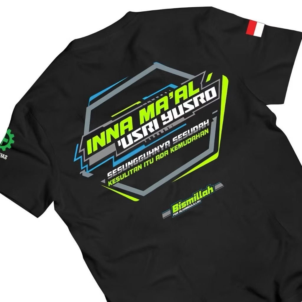 Kaos V2 Bismillah Inna Ma'al Usri Yusro Sesungguhnya Beserta Kesulitan Ada Kemudahan Baju Distro Cottonn