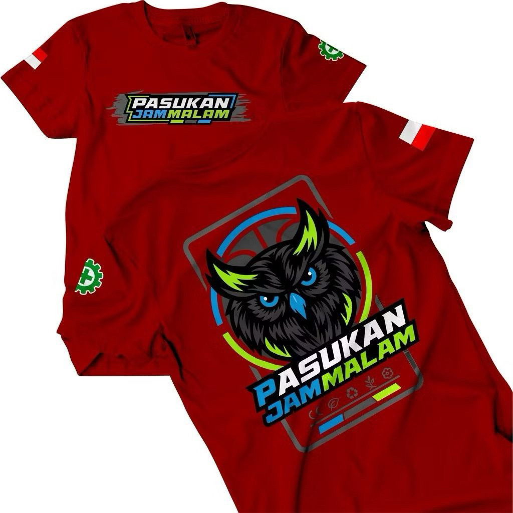 Kaos Pasukan Jam Malam BURUNG HANTU PREMIUM Tanduk Hijau Mata Biru Cotton
