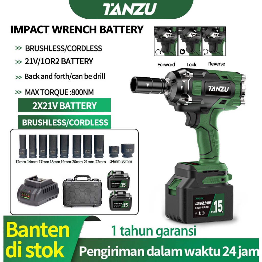 Huaqi 21V 1/2 Ukuran Chuck/330/600/800Nm Set Kunci Pas Impact Wrench Kunci Torsi Impact Baterai/Kunci Impact Tanpa Kabel