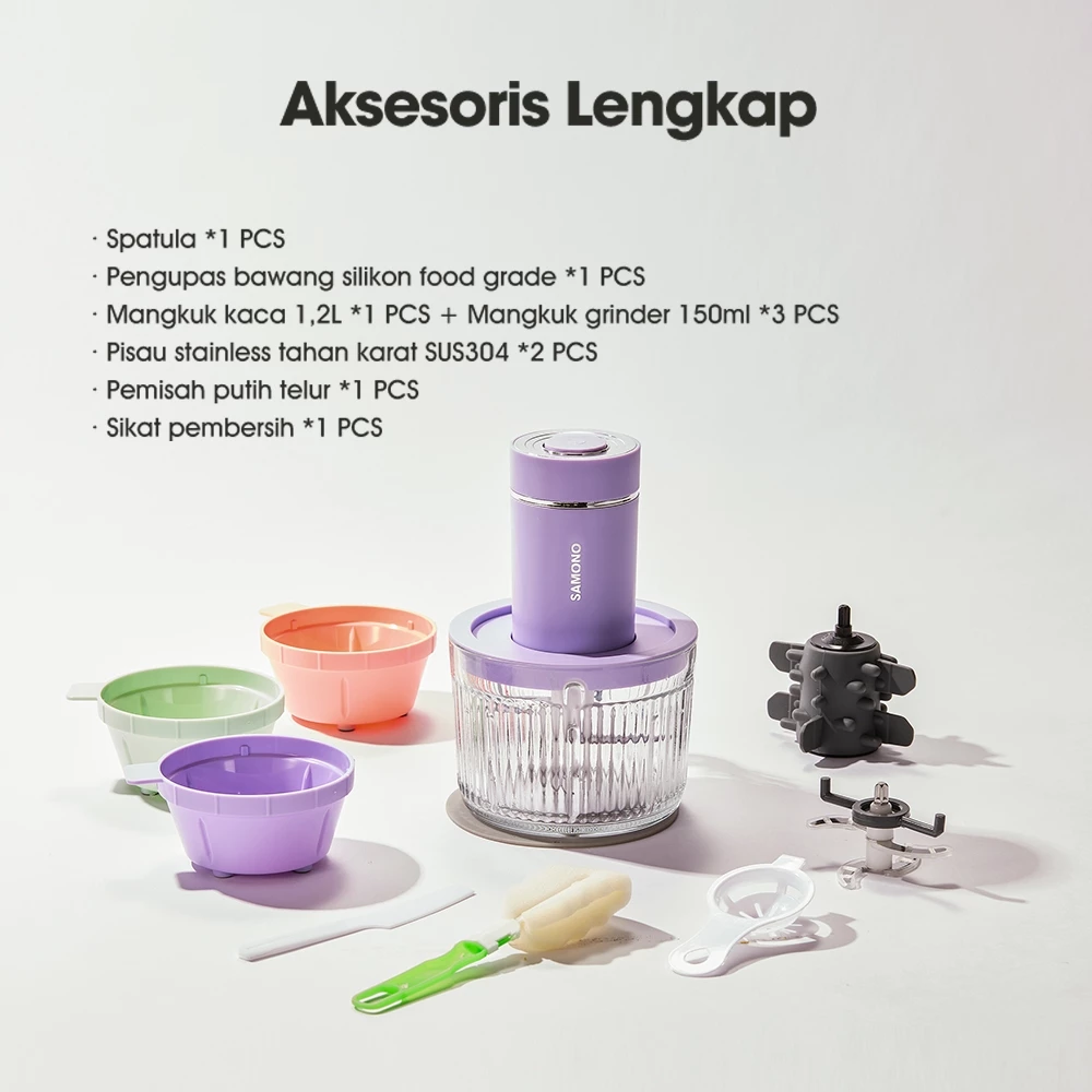 SAMONO SW-MFC300 Food Chopper Penggiling Daging Bumbu Dengan Pengupas Bawang Wadah Kaca 1,2L + 3 Cup