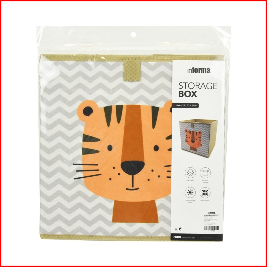 Informa 29x23x29 Cm Kotak Penyimpanan Lipat Motif Tiger - Cokelat Kotak Serbaguna Wadah Simpan Storage Box Boks Organize