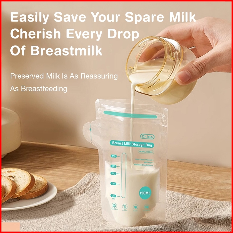 Dr.isla Kantong Asi 150ml 10pcs Penampung Asi Plastik Asi Kantong Susu Bpa Free Sekali Pakai Breastmilk Storage Bag Msb0