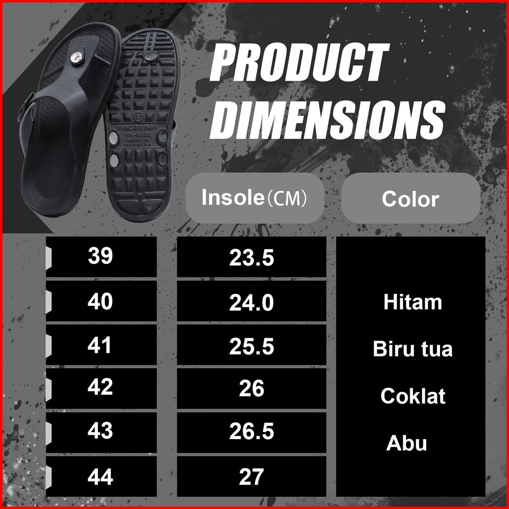 Inkayni Sandal Pantai Pria Jepit Karet Eva Ukuran Besar Ukuran 39-44 Bahan Karet Sandal Jepit Santai Modis