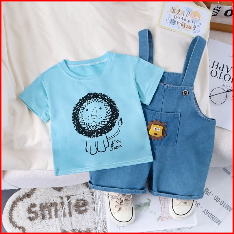Setelan Anak Overall Celana Jeans Pendek Kaos Lengan Pendek Oneset Anak Laki Laki Terbaru