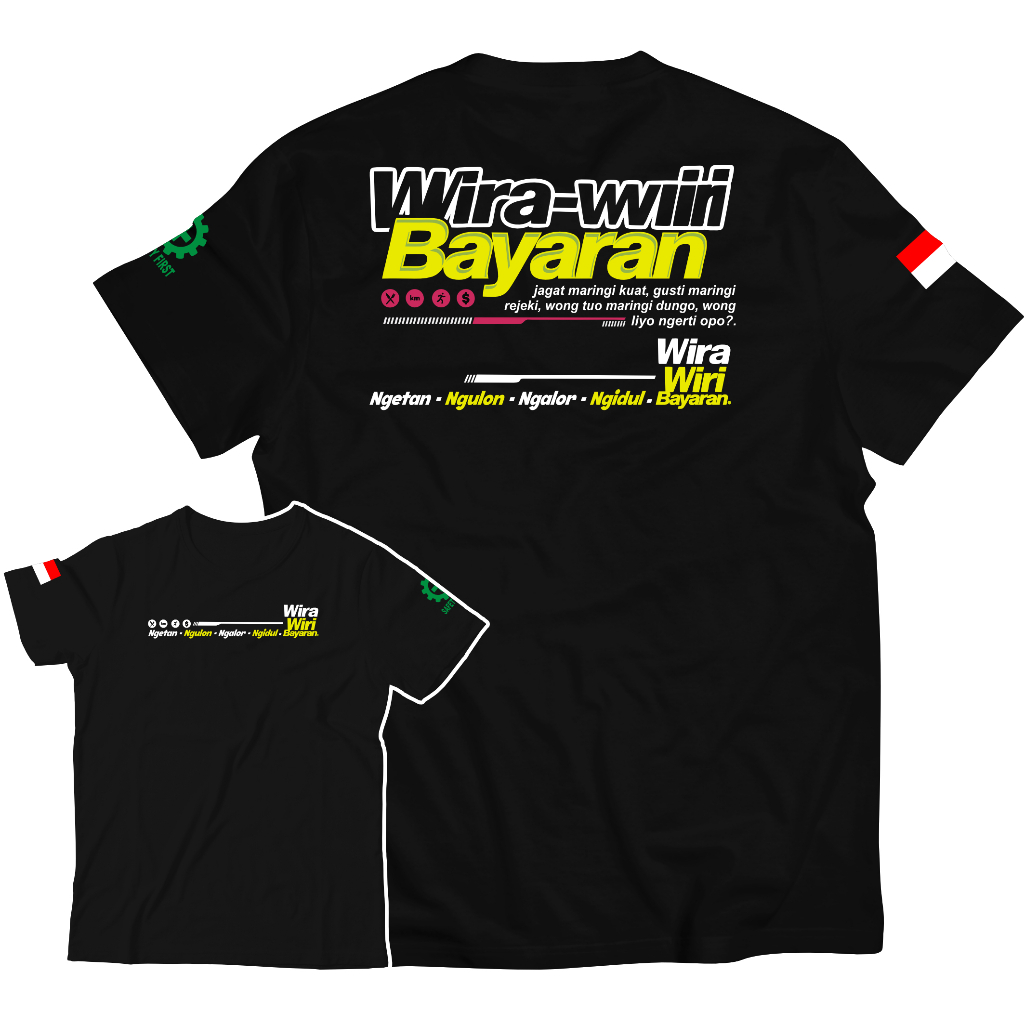Tshirt Baju Kaos Wira Wiri Bayaran Hijau Stabilo Baju Distro Viral Kata Combed 30s Pria Unisex - Kaos Kata Kata - Kaos Custom