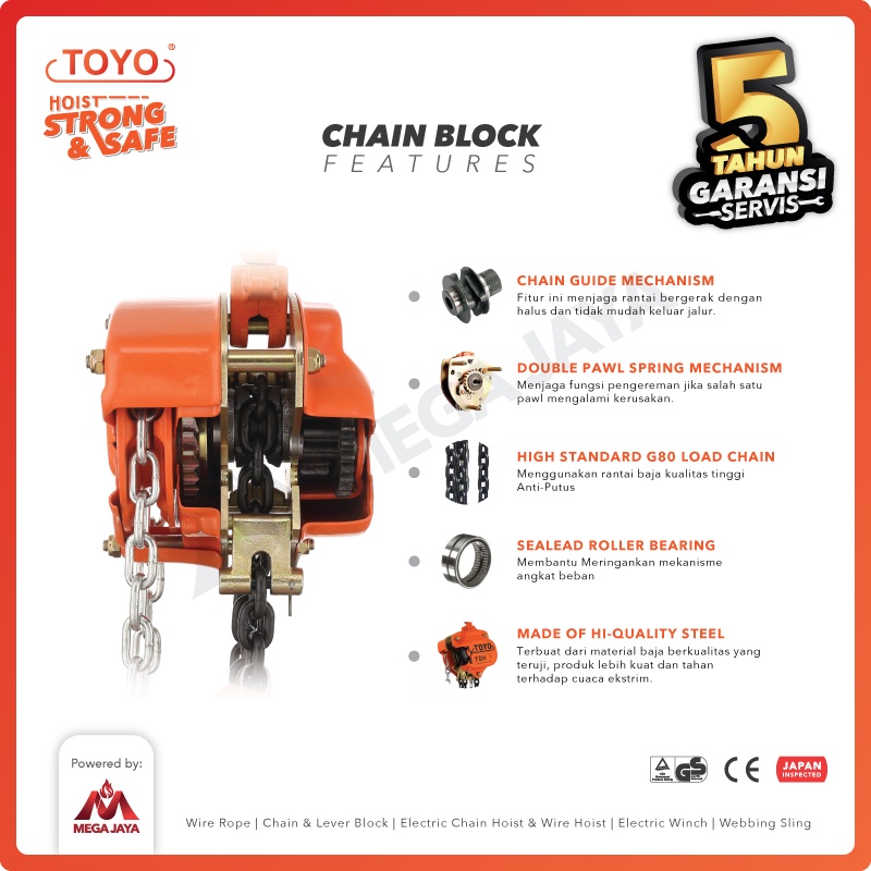 Toyo Chain Block / Takel 1 Ton X 5 Meter