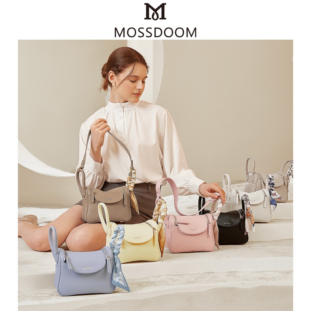 𝐏𝐑𝐎𝐌𝐎 MOSSDOOM Tas Wanita Zenith Bentuk Bantal Tas Bahu Tas Selempang Warna Solid Simple Elegan Branded Original