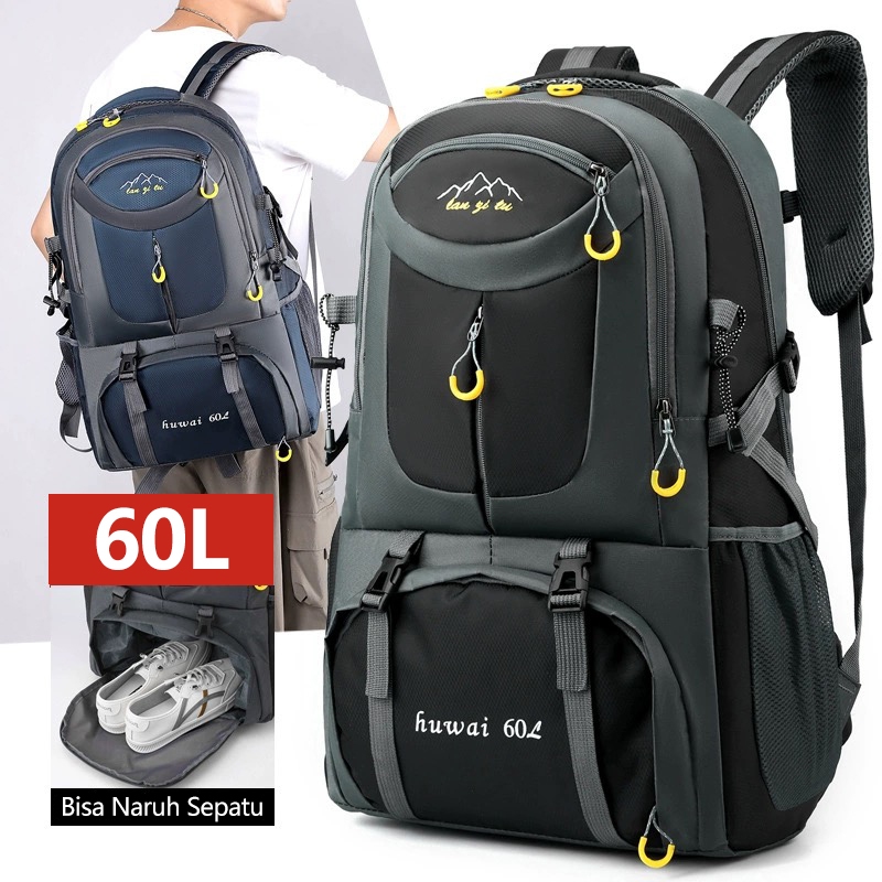 Highland Tas Ransel Pria Besar Gunung Tas Backpack Jumbo Anti Air Casual Tas Punggung 60L Outdoor TR120