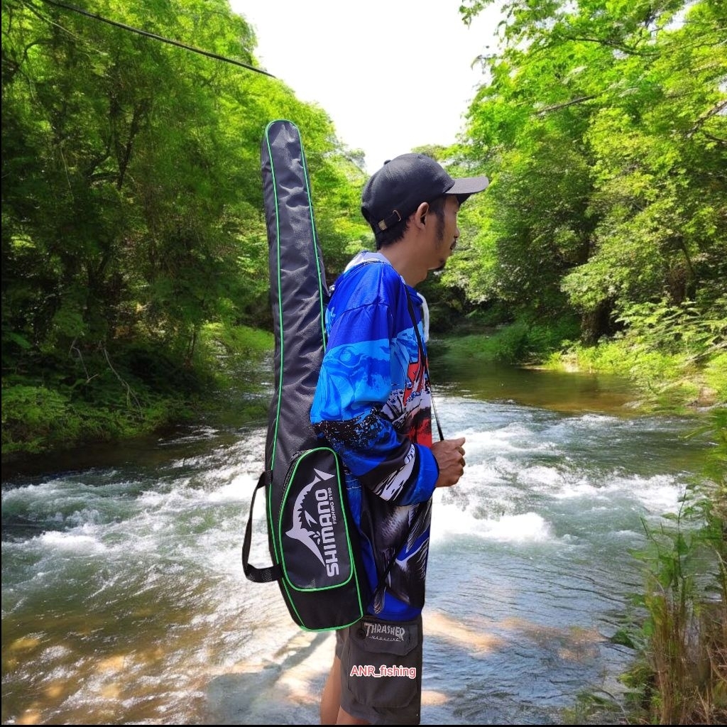 Tas pancing Shimano selempang Dinier Polyester pabric ukuran 60cm 75cm 100cm