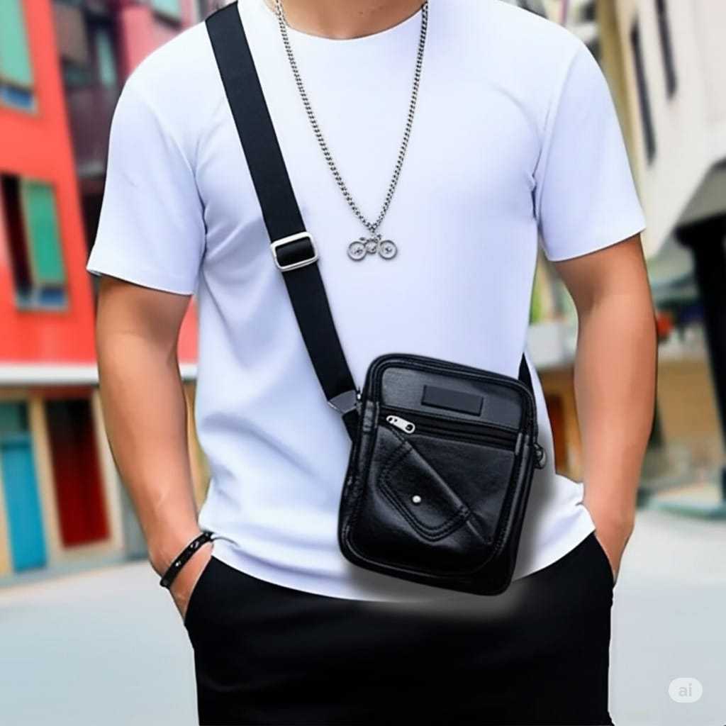 Terbaru Tas Selempang Bahu Slingbag Pria /as Selempang Pria Mini bahan kulit sintetis Termurah
