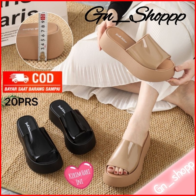 Sandal Wedges Wanita Slop Glosy Balance 1758-a1 Jihyo Gn Shoppp