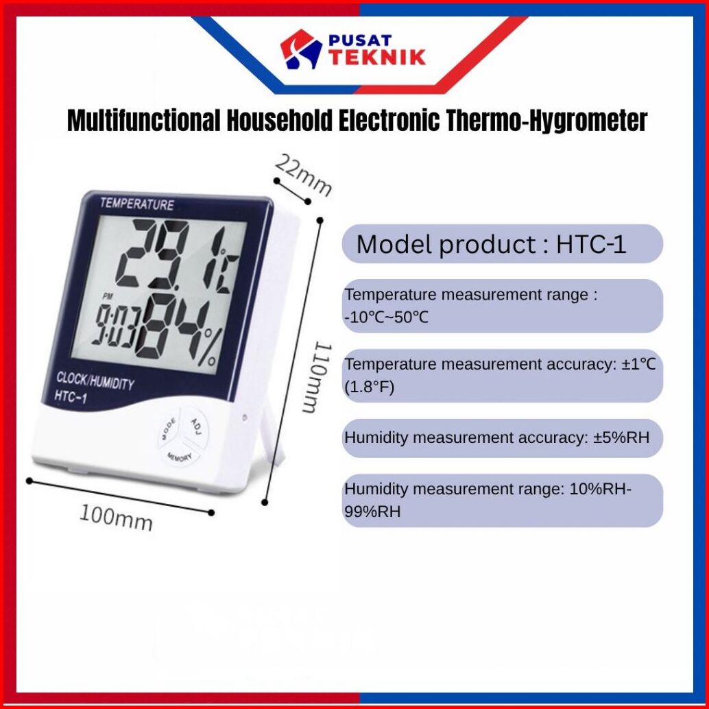 Htc-1 Htc-2 Termometer Jam Digital Alat Ukur Suhu Kelembaban Ruangan Plus Baterai Siap Pakai