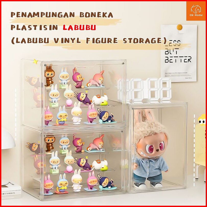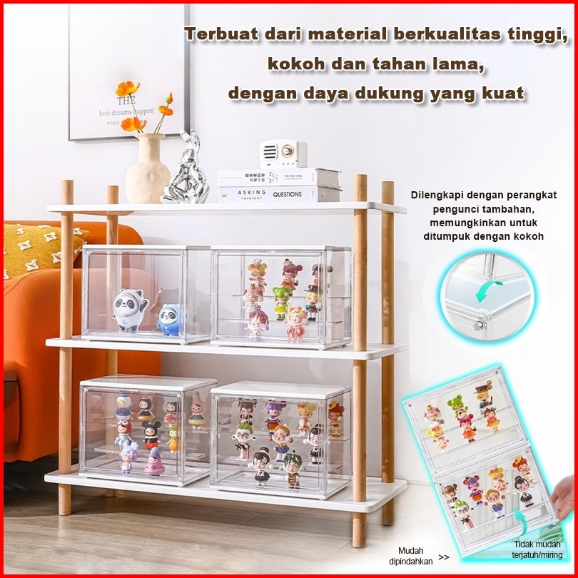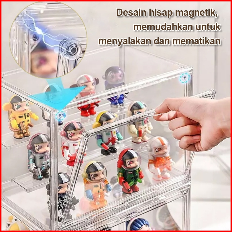 Kotak Display Akrilik Popmart Labubu Organizer Penyimpanan Transparan Mainan Yang Dapat Ditumpuk Dan Magnetik