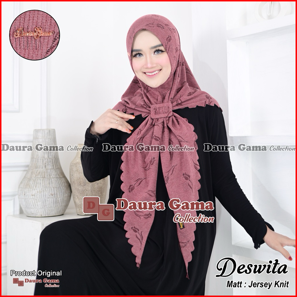 Rizkihijab- Deswita Kerudung Segitiga Pad Antem Knit Motif Hijabmuslimah Freegesper