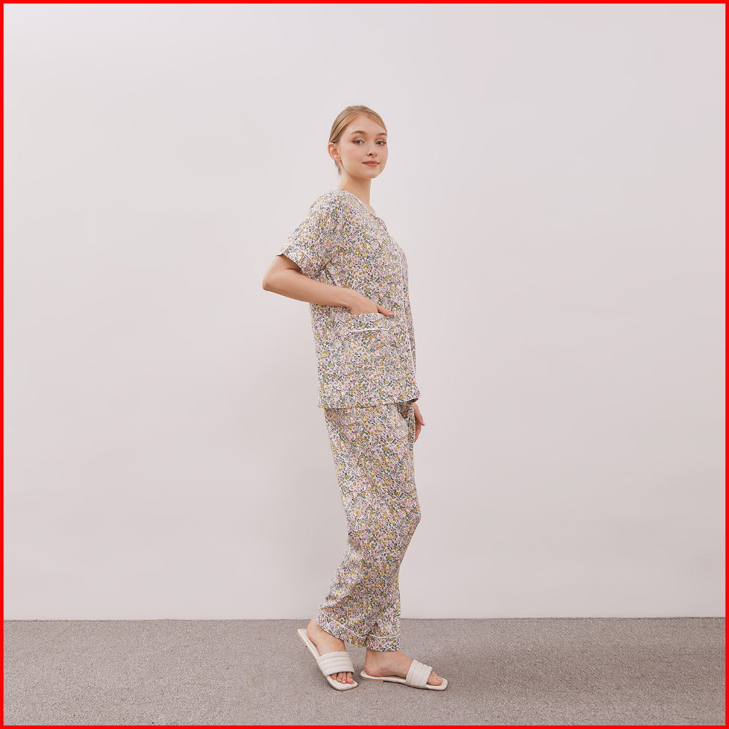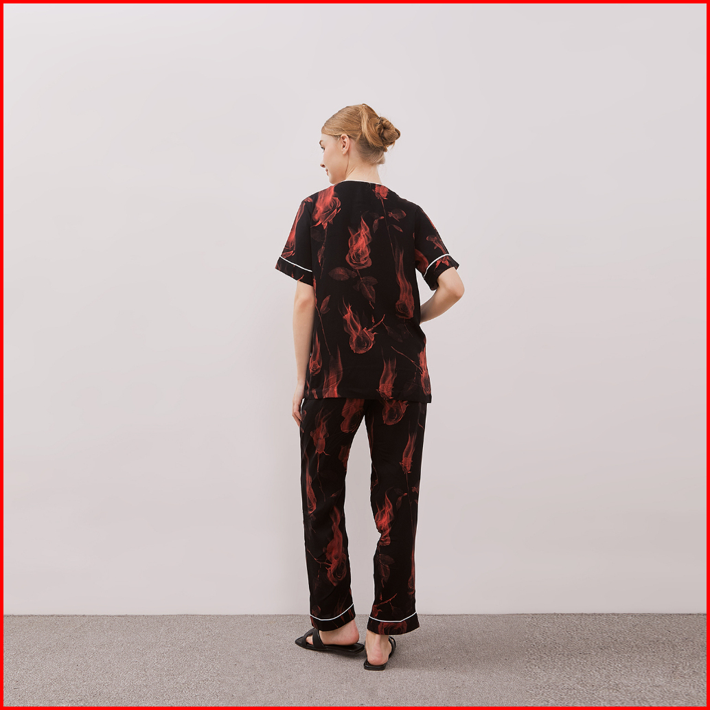 Jsm X Sare-heo Sleepwear Setelan Piyama Long Pants Stylish Rayon Motif
