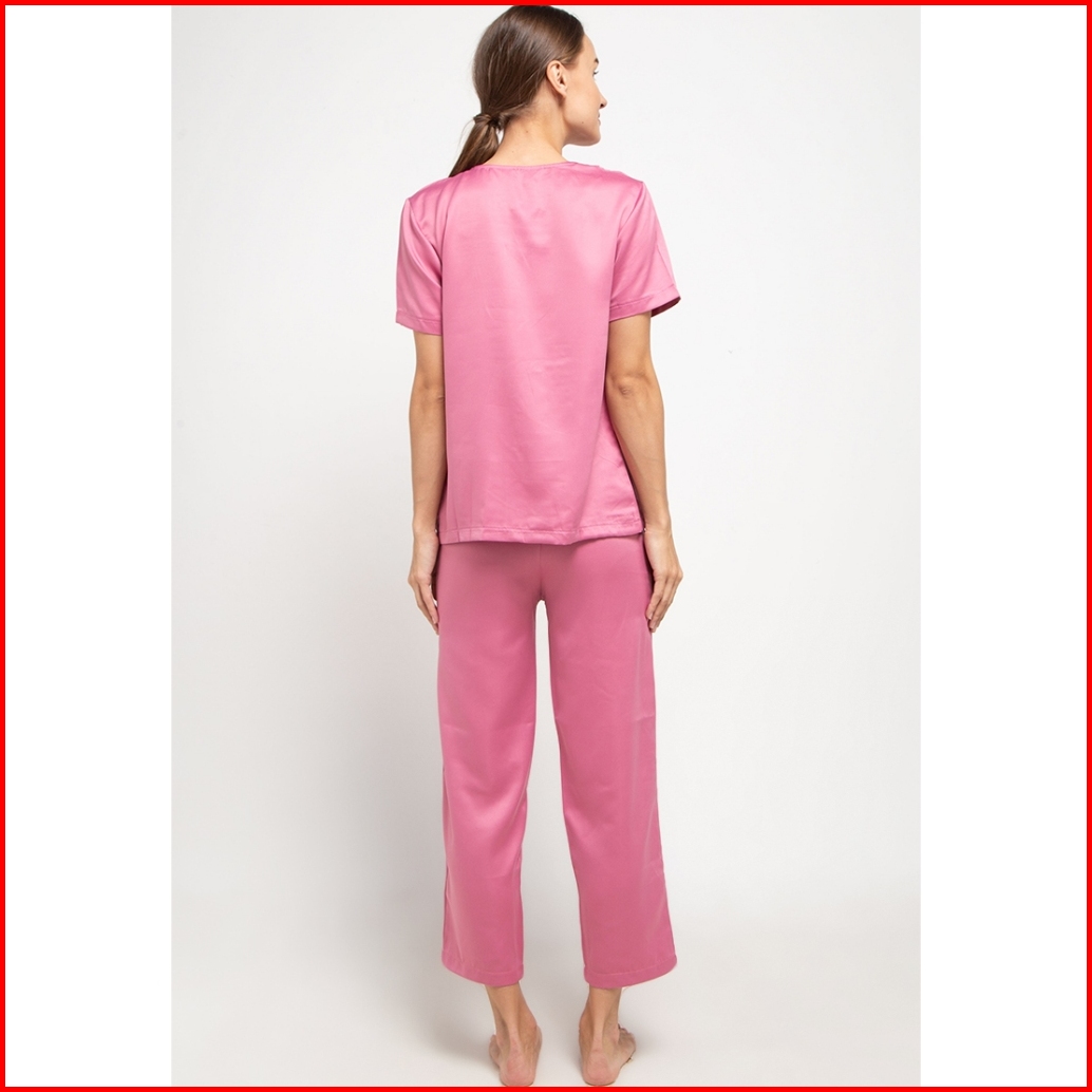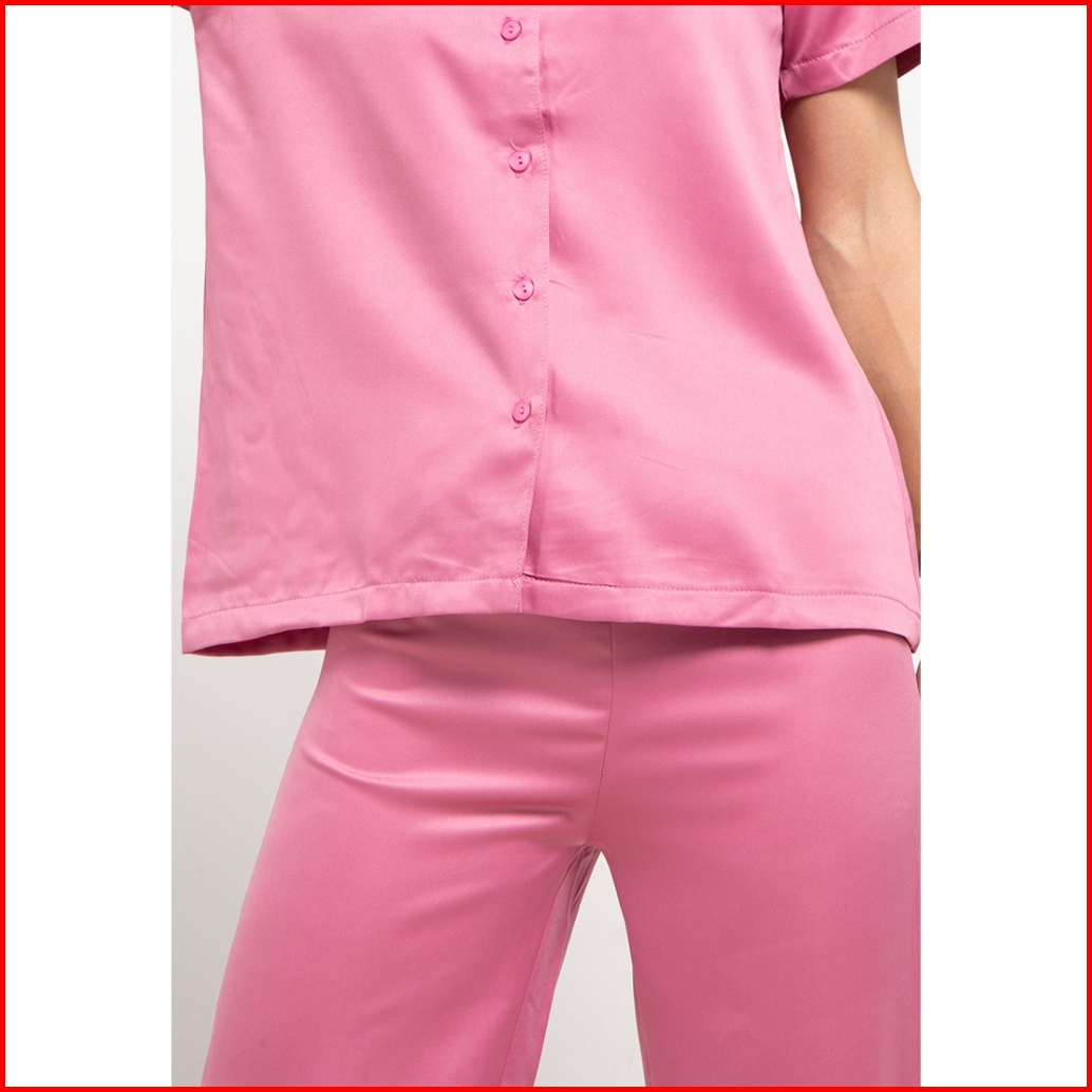 Set Pyjama Ladies Sleepwear 304 Satin Pink Lengan Pendek Celana Panjang B2008 32006 Pajamas Baju Tidur Wanita Kancing An